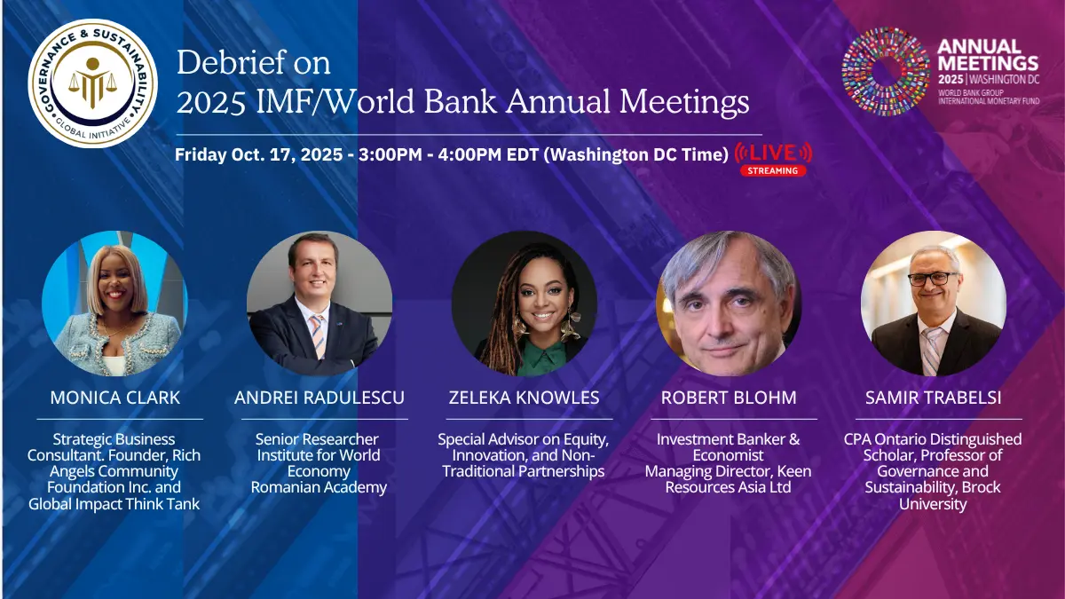 In sync with the International Monetary Fund - World Bank Annual Meetings taking place in Washingston DC, the Global Initiative for Governance and Sustainability - GIGS will hold a highlights hybrid debrief event to discuss the main takeaways and deliberations of these important meetings. The debrief will take place in-person in IMF headquarters and be broadcast online on Oct 17, 2025 at 3pm Washington Time. The IMF-World Bank Meetings Debrief is a highly-anticipated tradition that GIGS has instaured, attended by high-profile participants of the IMF-WB meetings, and attracting more than hundred participants and thousands of views on the live broadcast.